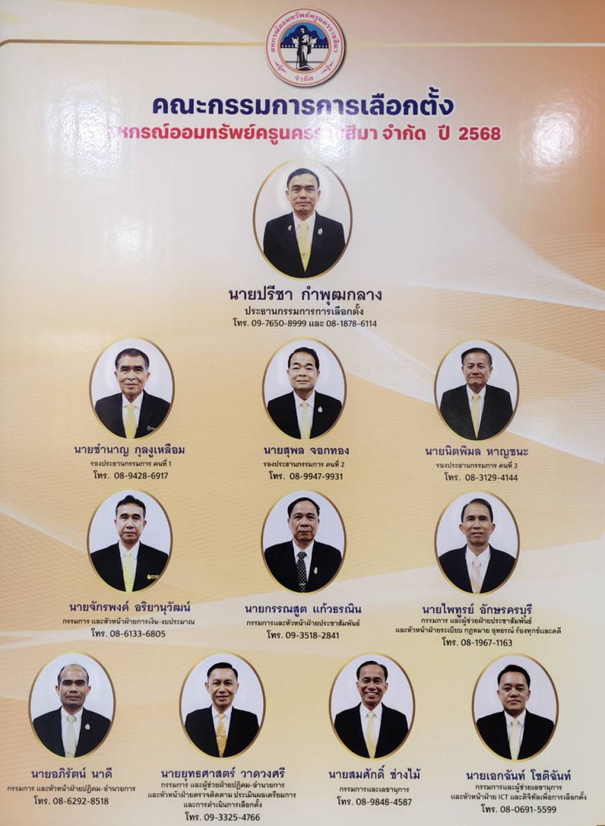 กกต.สหกรณ์ออมทรัพย์ครูนครราชสีมา จำกัด 669 หมู่ 5 ถนนราชสีมา-ปักธงชัย ต.ปรุใหญ่ อ.เมืองนครราชสีมา จ.นครราชสีมา 30000 โทรศัพท์ 0805397X2X ขับเคลื่อนโดย THAI.AC เข้าระบบ